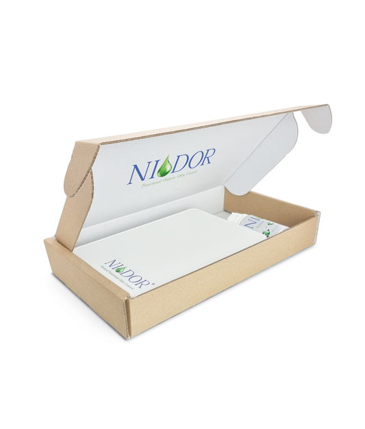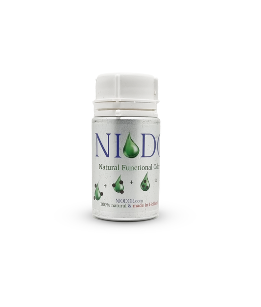 NIODOR is a 100% natural formula of (undiluted) essential oils, obtained from plants by means of steamdestillation which are cold diffused in the air. This diffuser works with an app or manually controlled both on batteries and a USB C-cable and provides a fine mist of the NIODOR formula, which completely neutralizes the cannabis