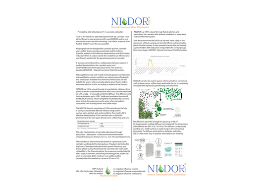 I was stunned that the NIODOR product completely eliminated the smell of cannabis, which is a crucial issue in our industry and which no one has achieved 100%. Even that it is 100% natural surprises me and it really zero’s the cannabis smell and you only smell a faint, subtle, lemonish rainforrest odor. It makes me feel good and also the rest of the building has 0 cannabis odor. Happy and satisfied.